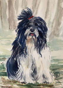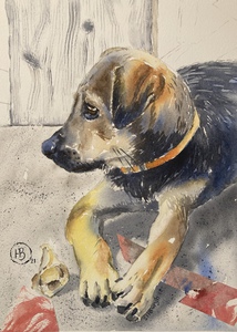 2021Pippa. Foto door Nicolette van Heesch. Deze aquarel ging gewoon vanzelf goed. Eerst goed gekeken naar aquarellen van andere honden